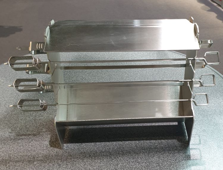 • Variable Garstufen: Dank der Schlitze und Aufhängungen in den Seitenteilen können Sie Spieße, Grillrost und Gar-Haube individuell einstellen.
